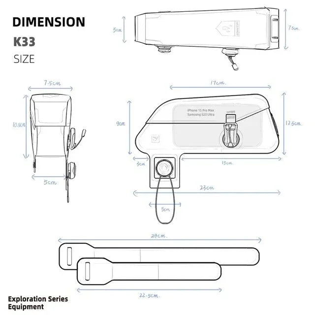het hoofdvak heeft de afmetingen 23 x 7,5 x 12,5 cm (L x B x H); de fietstas kan kleine essentiële artikelen zoals een mobiele telefoon of portemonnee bevatten; je benen raken de tas helemaal niet tijdens het fietsen.
